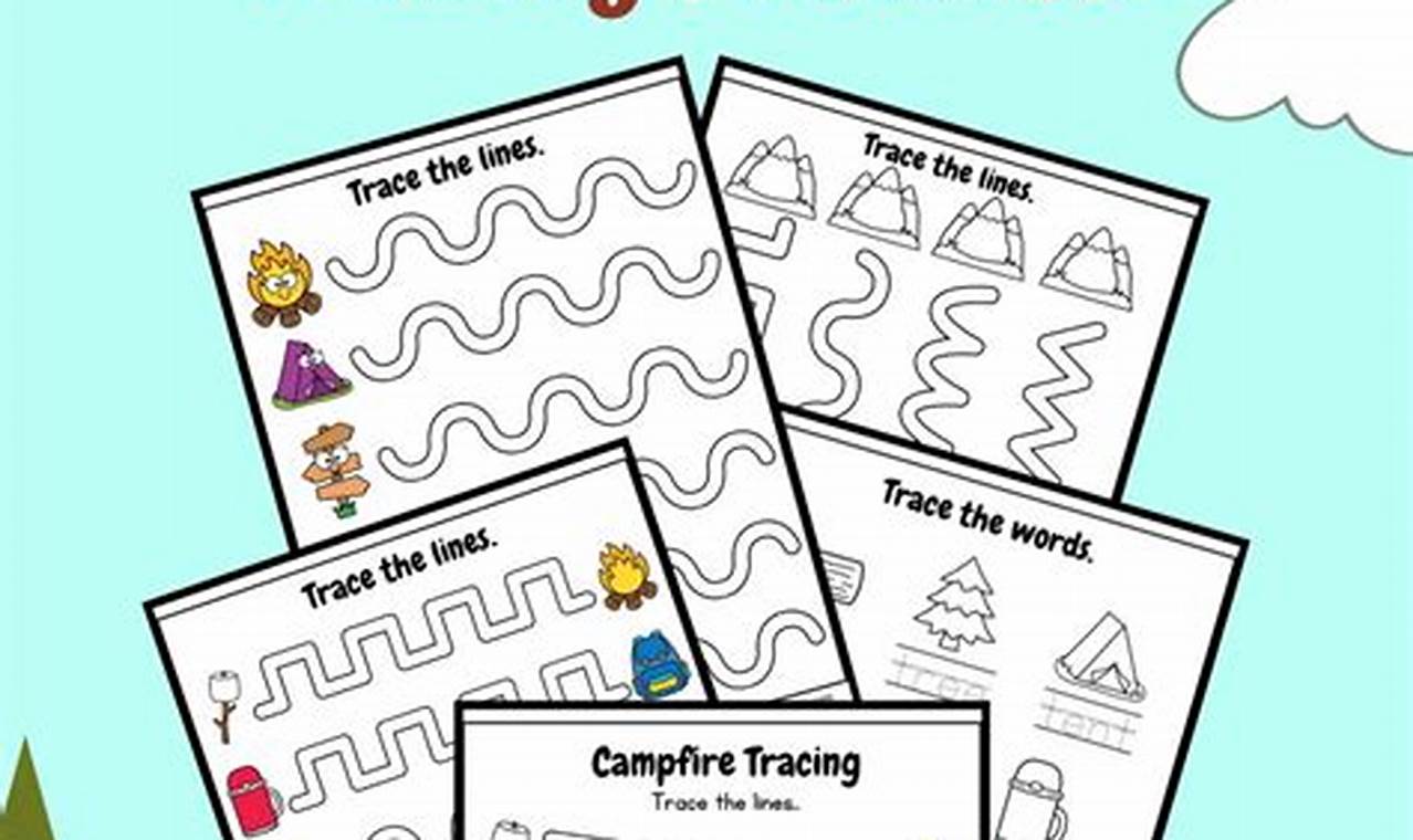 This particular worksheet features a clear outline of campfire logs, designed with bold lines to aid young learners in easily identifying the tracing path. The outline may be simple, focusing on the basic shape of the log, or more complex, including details like bark texture or knot patterns. Adequate space is provided for repeated practice, allowing children to build confidence and refine their motor skills with each attempt. Illustrations related to nature, like flames or trees, might accompany the tracing activity, further enhancing engagement.